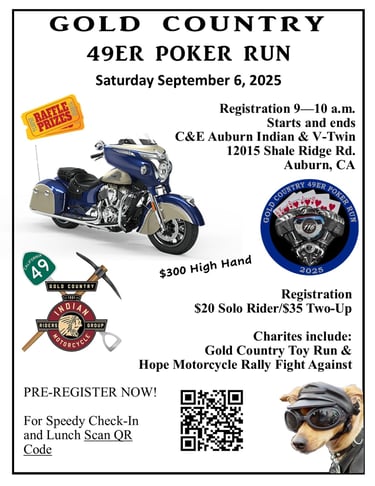 09:30 Arrival at C & E Auburn Indian Motorcycle and V-Twin, 12015 Shale Ridge Rd, Auburn, CA 95602
