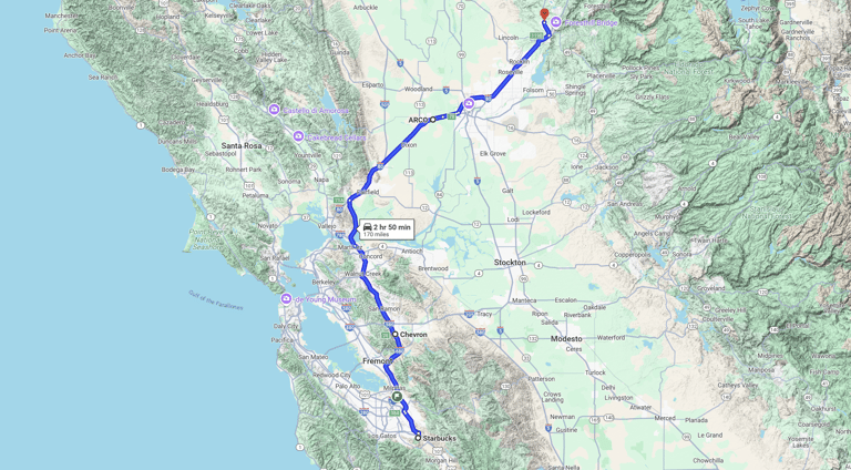 08:30 Gas stop at ARCO, 4480 Chiles Rd, Davis, CA 95618