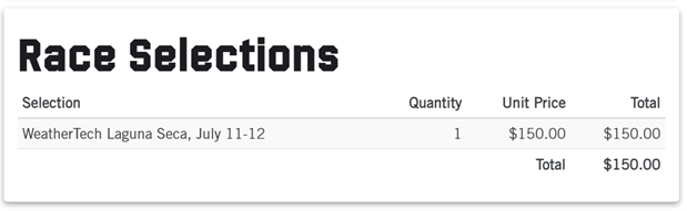 Includes a Saturday and Sunday Race Ticket (Laguna Seca Only)